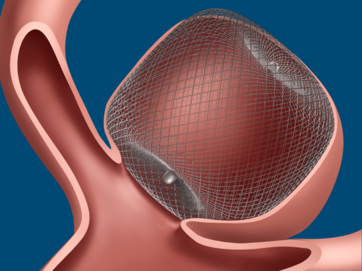 WEB留置術は、瘤内フローダイバーターともいわれ、細かい網目状の風船のようなデバイスを脳動脈瘤の中へ留置する治療方法です。フローダイバーターと同様、脳動脈瘤に入る血流は制御し、動脈瘤の閉塞を促します。手術時間が短く、安全性も高いうえ、脳動脈瘤が破裂したくも膜下出血の症例にも使用することができ、術後早期に抗血小板薬を辞めることができるのもメリットです。
