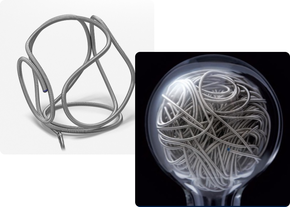 脳動脈瘤内へカテーテルを介し、プラチナ、タングステンの合金であるコイルと呼ばれる物質を充填、閉塞する治療方法です。